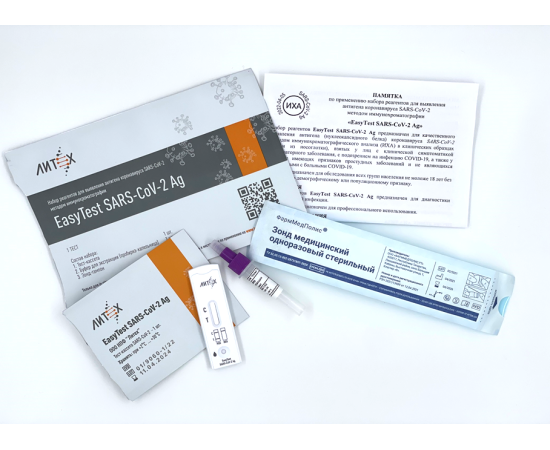 | Набор реагентов для выявления антигена коронавируса SARS-CoV-2 методом иммунохроматографии EasyTest SARS-CoV-2 Ag, 1 тест | Тест-кассета - 1 шт, буфер для экстракции в пробирке-капельнице - 1 шт, зонд-тампон - 1 шт | 1 | IVD |
